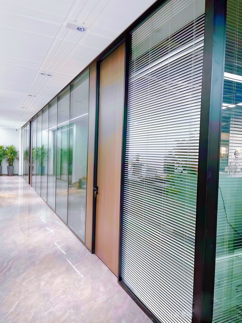 内置百叶窗中空玻璃,原理是将铝制的百叶帘安装于中空玻璃的中空腔体内,通过磁力拖动,来实现中珞百叶帘的收拢、展开及调光功能,以达到自然采光与完全遮阳的作用。